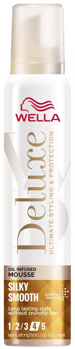 Wella Deluxe Silky Smooth to wygładzająca pianka do włosów, która zapewnia ekstra mocne utrwalenie i jednocześnie dba o zdrowy wygląd Twoich kosmyków. Dzięki wzbogaconej formule z olejkami, produkt nawilża i wygładza suche oraz zniszczone włosy, nadając im elegancki połysk bez nieprzyjemnego efektu szorstkości. Idealna do każdego rodzaju włosów, pianka utrzymuje fryzurę w doskonałym stanie aż do 3 dni, nie obciążając przy tym włosów.