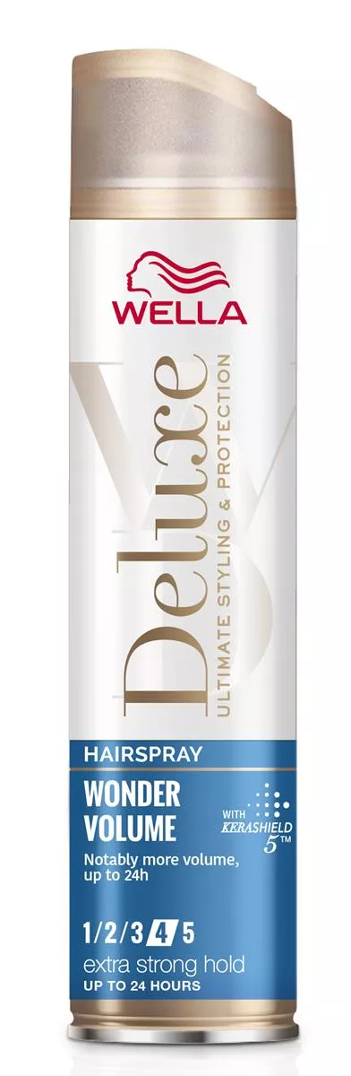 Lakier do włosów Wella Deluxe Wonder Volume to niezawodny produkt, który zapewnia trwałość i ochronę Twojej fryzury. Wyposażony w keratynowy kompleks ochronny Kerashield 5™, skutecznie chroni włosy przed pięcioma szkodliwymi czynnikami: uszkodzeniami mechanicznymi, przesuszeniem, utratą blasku, puszeniem się oraz promieniowaniem UV. Dodatkowo, lakier ten pomaga zachować keratynę we włosach i łatwo się wyczesuje.