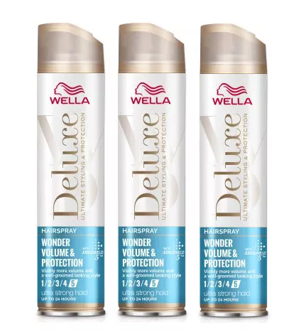 Lakier do włosów Wella Deluxe Wonder Volume & Protection to idealne rozwiązanie dla tych, którzy pragną ultra mocnego utrwalenia oraz dodatkowej objętości. Dzięki innowacyjnemu keratynowemu kompleksowi ochronnemu Kerashield 5™ lakier zapewnia wszechstronną ochronę Twoim włosom, chroniąc je przed pięcioma szkodliwymi czynnikami: