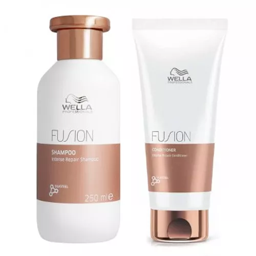 Program pielęgnacyjny Fusion uzupełnia braki aminokwasów, które odpowiedzialne są za zniszczenia. Dzięki uzupełnieniu niedoborów aminokwasy wnikają w głąb kory, co sprawia, że włosy stają się miękkie i elastyczne, a także odporne na ponowne uszkodzenia. Ponadto w kosmetykach z tej serii znajdują się również cenne aminokwasy jedwabiu. Zestaw odbudowujący Wella Fusion to must have na co dzień - szampon oraz odżywka.