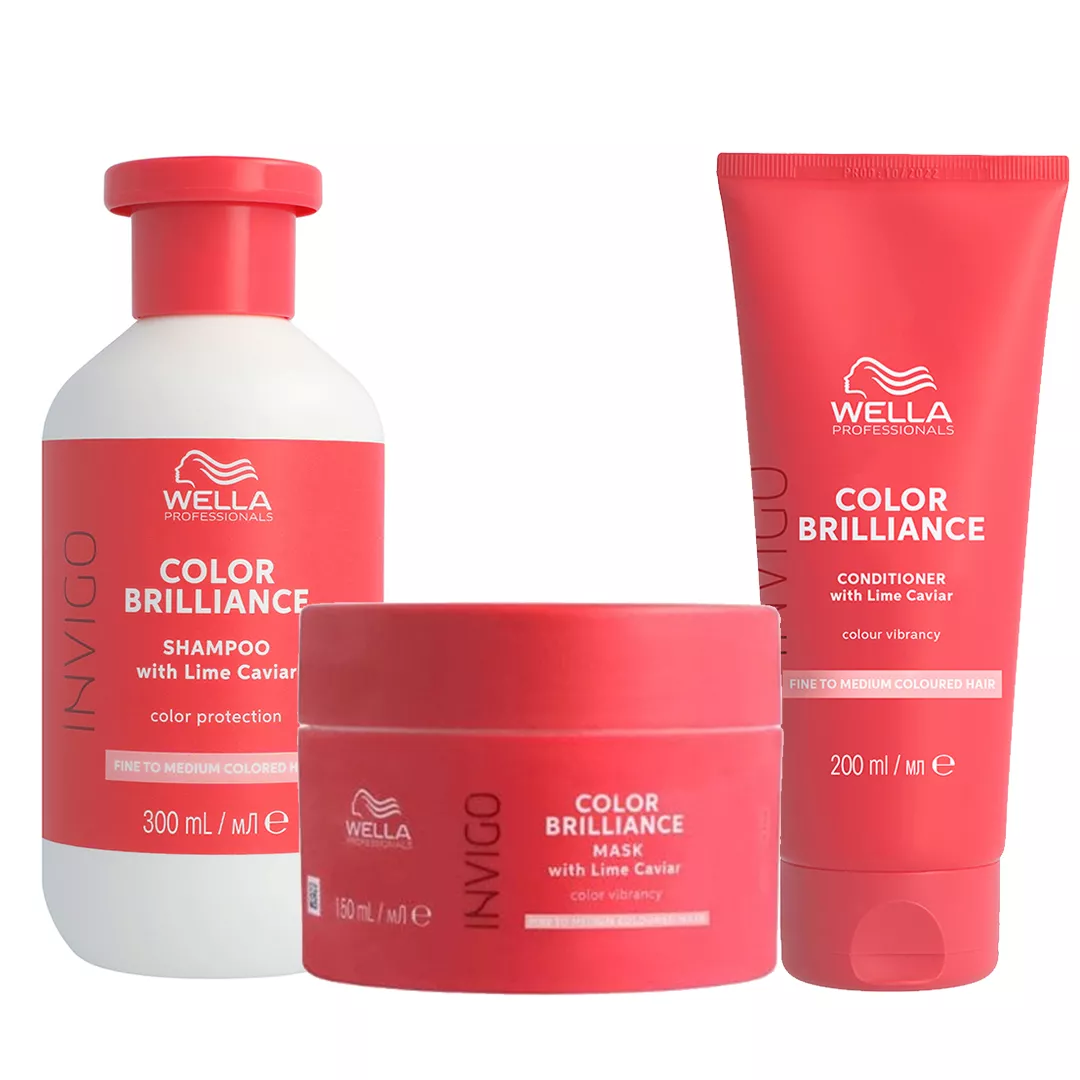 Odkryj szampon do włosów cienkich i normalnych Wella Professionals Invigo Color Brilliance, stworzony w celu utrzymania żywej barwy i ochrony włosów poddawanych koloryzacji. Wella Professionals Invigo Color Brilliance odżywka do włosów cienkich i normalnych to idealny sposób na zachowanie i ożywienie koloru włosów farbowanych. Dzięki unikalnej formule kosmetyk pomaga zapobiegać matowieniu i blaknięciu koloru. Maska do włosów cienkich i normalnych jest idealnym sposobem na utrzymanie ich wyrazistej barwy po koloryzacji. Zawarte w produkcie histydyna oraz witamina E pomagają kontrolować proces utleniania zachodzący po koloryzacji.