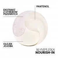 - Długotrwałe nawilżenie dzięki kompleksowi NOURISHI-IN, w tym ekstraktowi z otrębów pszennych i olejkowi jojoba.