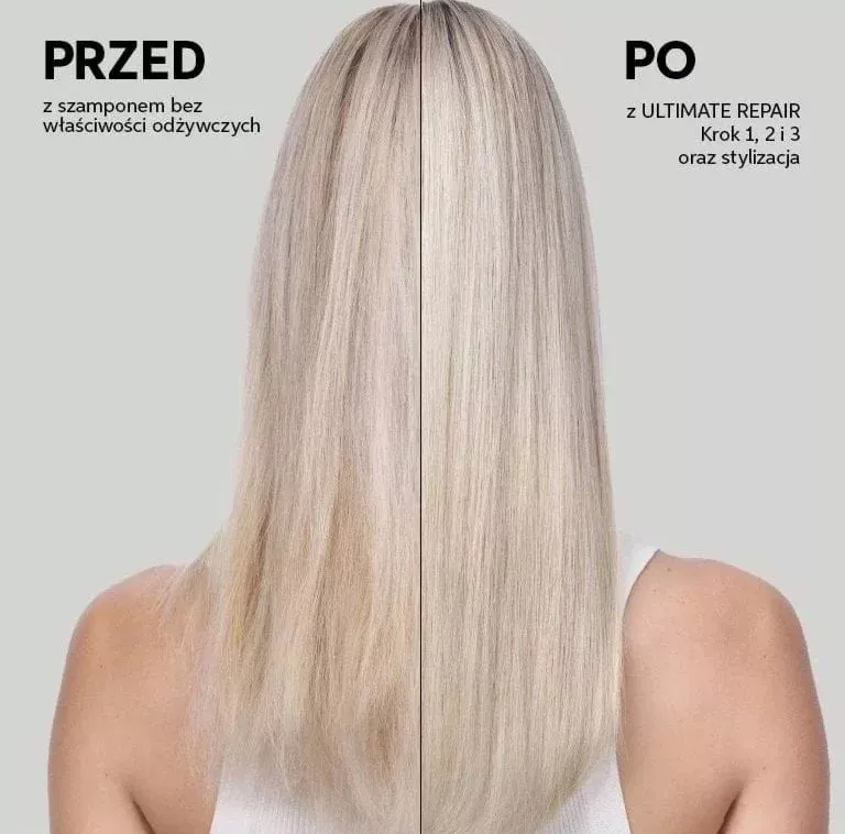 - Podkreśla naturalny blask pasm, nadając im jedwabistą gładkość