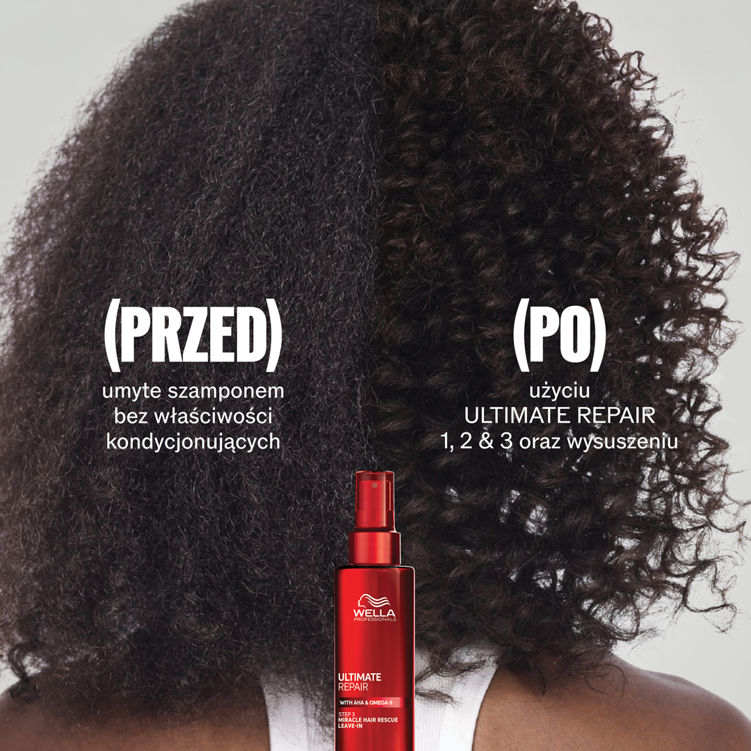 Wella Ultimate Repair Miracle to zaawansowane serum regenerująco-wygładzające stworzone z myślą o intensywnej odbudowie włosów nadwyrężonych zabiegami chemicznymi oraz codzienną stylizacją. Luksusowa formuła bazuje na kwasie alfa-hydroksylowym (AHA) oraz omega-9, dzięki czemu działa zarówno na powierzchni, jak i wewnątrz włókna włosa, przywracając im gładkość, blask i zdrowy wygląd. Regularne stosowanie serum sprawia, że włosy stają się wyraźnie mocniejsze, bardziej odporne na łamanie i uszkodzenia, a efekty widoczne są już po 90 sekundach od aplikacji. Produkt odpowiedni do każdego typu włosów, również po zabiegach chemicznych, z wegańską recepturą.