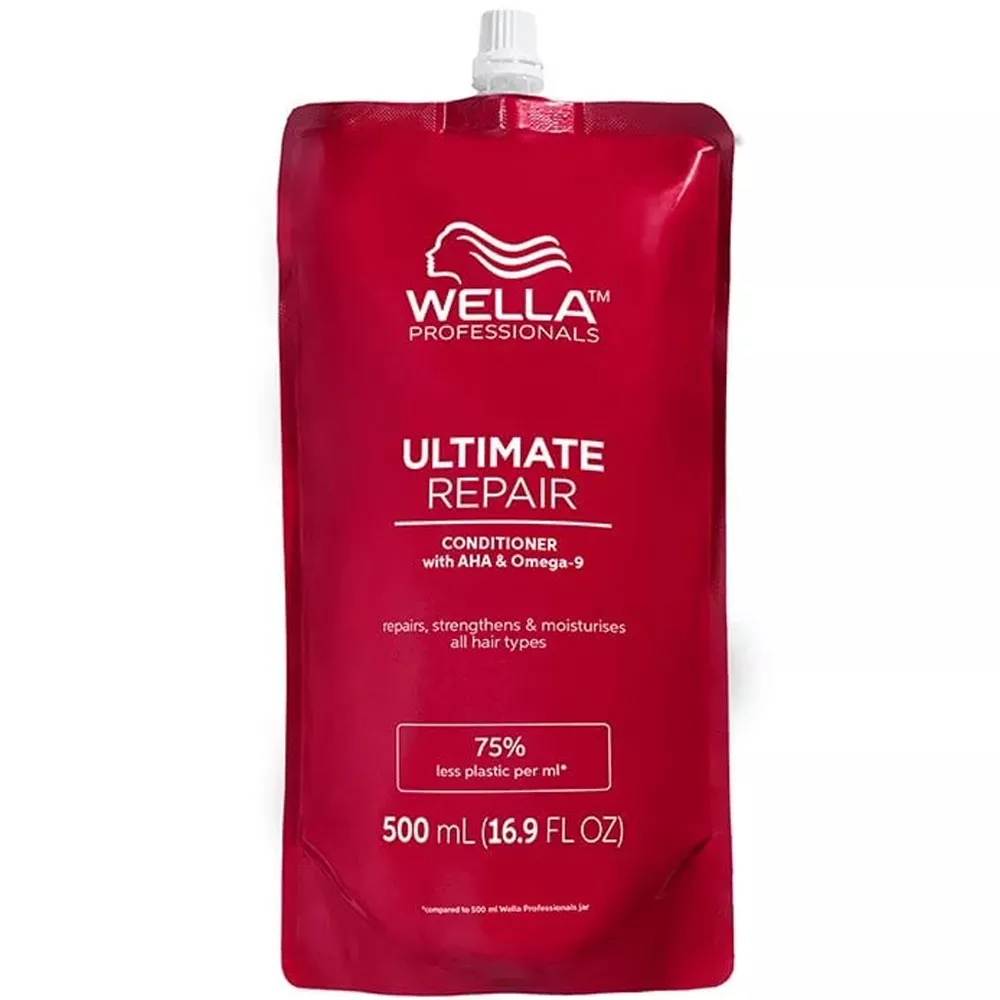 Wella Ultimate Repair to profesjonalna odżywka głęboko regenerująca w praktycznym opakowaniu refil o pojemności 500 ml, stworzona specjalnie do włosów zniszczonych i osłabionych. Jej zaawansowana formuła z kwasami alfa-hydroksylowymi (AHA) oraz omega-9 skutecznie odbudowuje zarówno wnętrze każdego włosa, jak i zewnętrzną warstwę łuski, przywracając im zdrowy wygląd, siłę i miękkość już po pierwszym użyciu. Odżywka natychmiastowo nawilża i odżywia pasma, chroniąc je przed uszkodzeniami wynikającymi z działania czynników zewnętrznych, farbowania, suszenia czy prostowania. Produkt jest odpowiedni do każdego rodzaju włosów, a szczególnie polecany do włosów bardzo zniszczonych. Dzięki lekkiej konsystencji nie obciąża fryzury, a codzienna pielęgnacja staje się jeszcze łatwiejsza i przyjemniejsza.