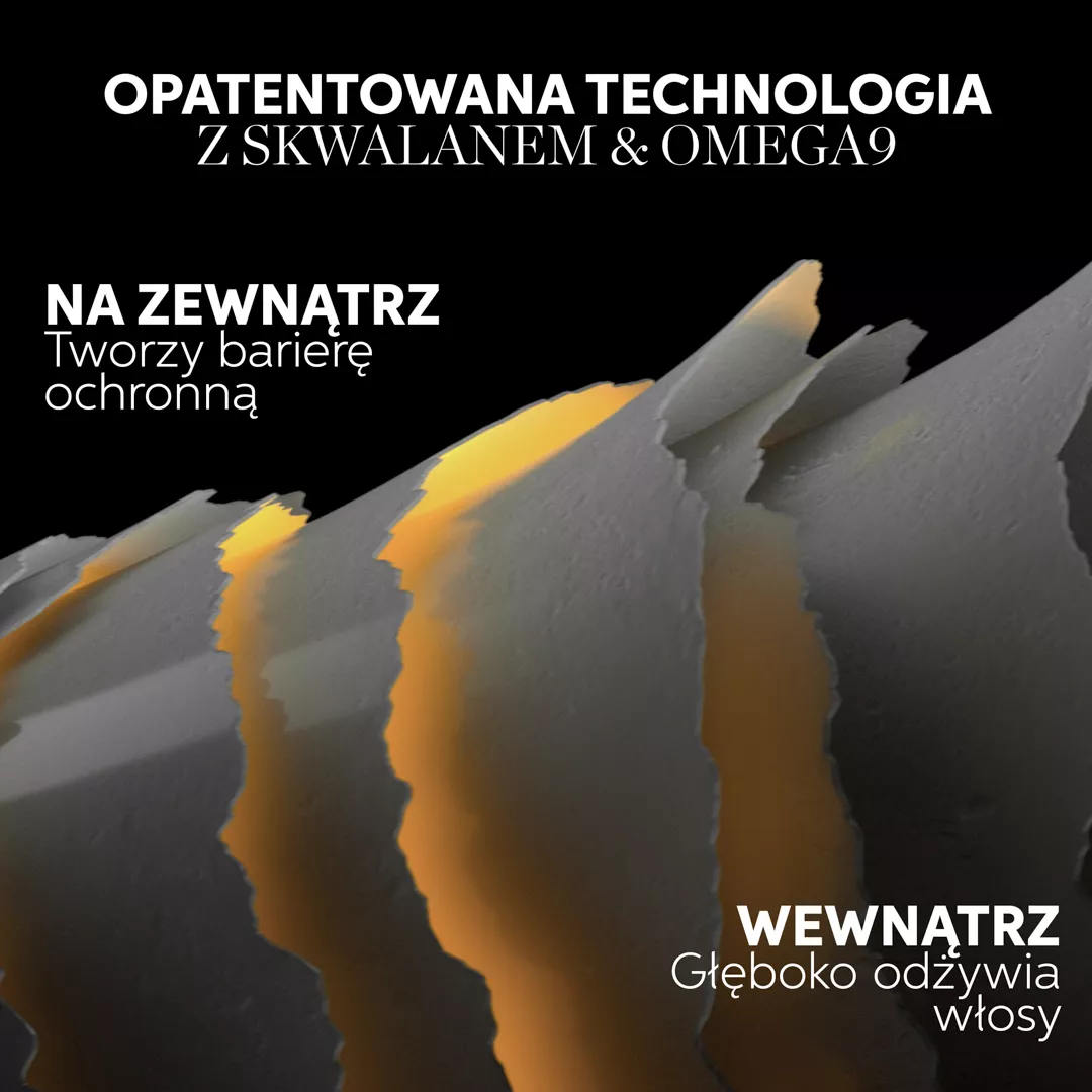 - Zawiera squalan i Omega-9, które regenerują i wzmacniają włosy