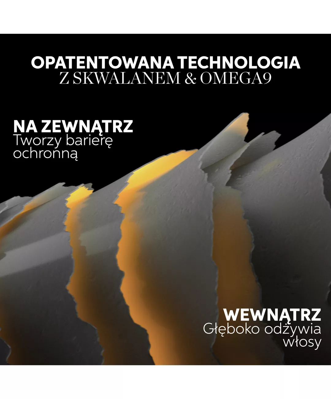 - Zawiera squalane i Omega-9 – składniki wspierające regenerację włosów od środka i na zewnątrz