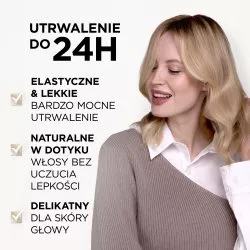 - Utrzymuje fryzurę do 48 godzin bez utraty elastyczności.