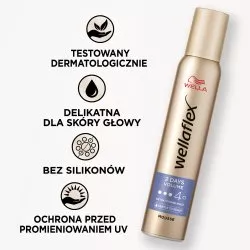 Wella Wellaflex 2nd Day Volume to extra mocna pianka do włosów, która pozwoli Ci cieszyć się doskonałą fryzurą przez cały dzień. Zaprojektowana z myślą o podkreśleniu naturalnego piękna i indywidualnego stylu, pianka ta wykorzystuje technologię FlexActive, aby zapewnić trzy kluczowe efekty: naturalną elastyczność, długotrwałe utrwalenie i ochronę włosów. Dzięki niej Twoje włosy będą miękkie w dotyku, bez uczucia lepkości, i będą utrzymywać się w nienaruszonym stanie aż do 48 godzin. Dodatkowo, pianka chroni przed promieniowaniem UV, co sprawia, że Twoje włosy wyglądają pięknie i zdrowo każdego dnia.