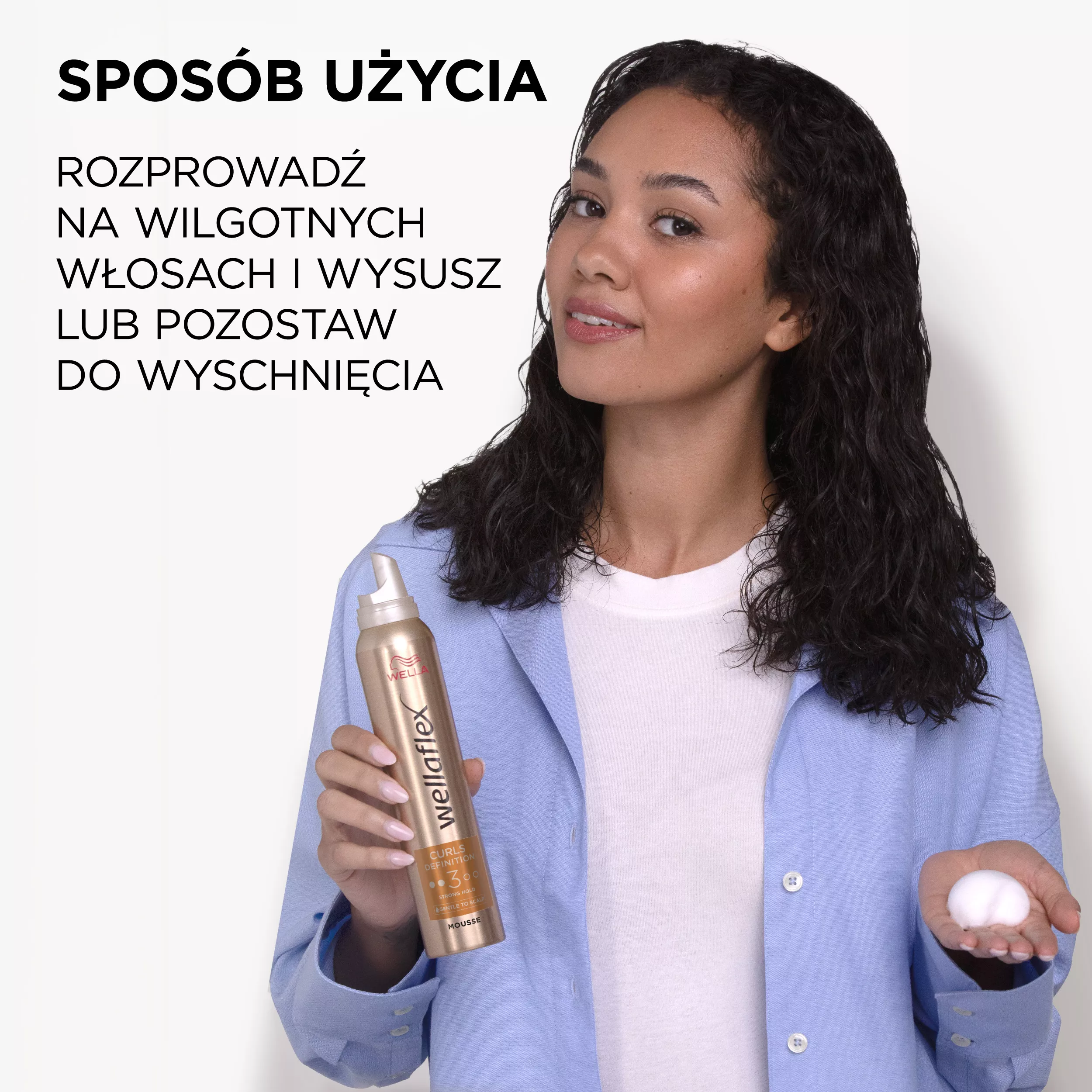 Równomiernie rozprowadź piankę na mokrych włosach.