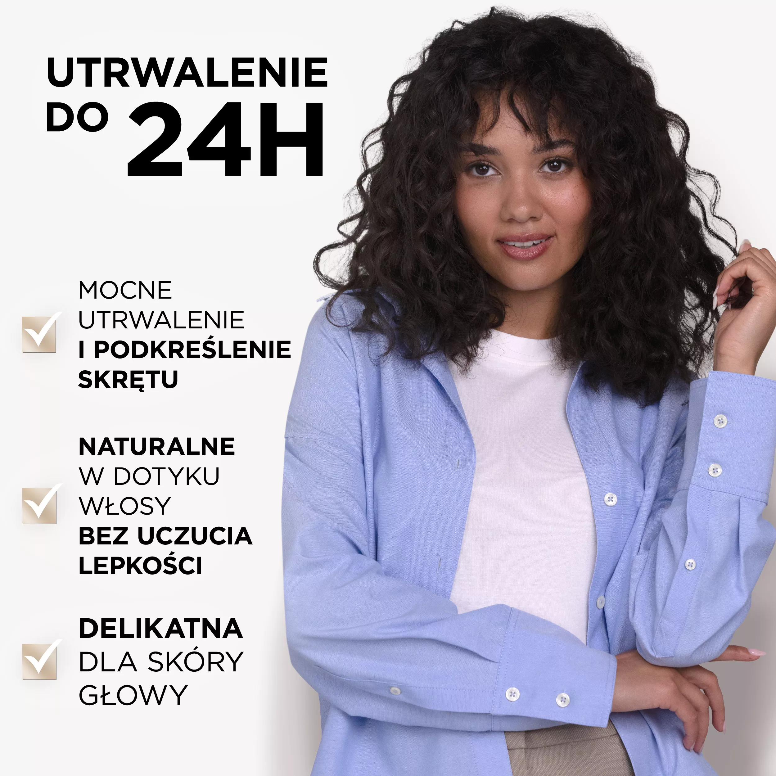 Zapewnia sprężyste, zdefiniowane loki z naturalnym wykończeniem, bez klejącego efektu.