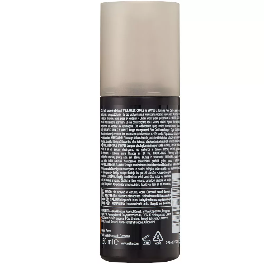 Lekki spray do stylizacji Wellaflex Curls & Waves, polecany przez Piotra Wasińskiego, ulubionego stylistę fryzur gwiazd, to prosty sposób na to, by Twoje loki i fale wyglądały naturalnie, ale nigdy nie były przyklapnięte. Spryskaj całe osuszone ręcznikiem lub suche włosy lub wybierz pojedyncze pasma i wmasuj, aby zobaczyć, jak formuła Flex Curl zadba o sprężystość Twojej fryzury. Spraw, aby Twoja domowa stylizacja była profesjonalna i efektowna, nie wkładając w to zbyt wiele wysiłku. Ponieważ bycie w ciągłym ruchu nie powinno wymagać żadnych kompromisów dotyczących włosów!