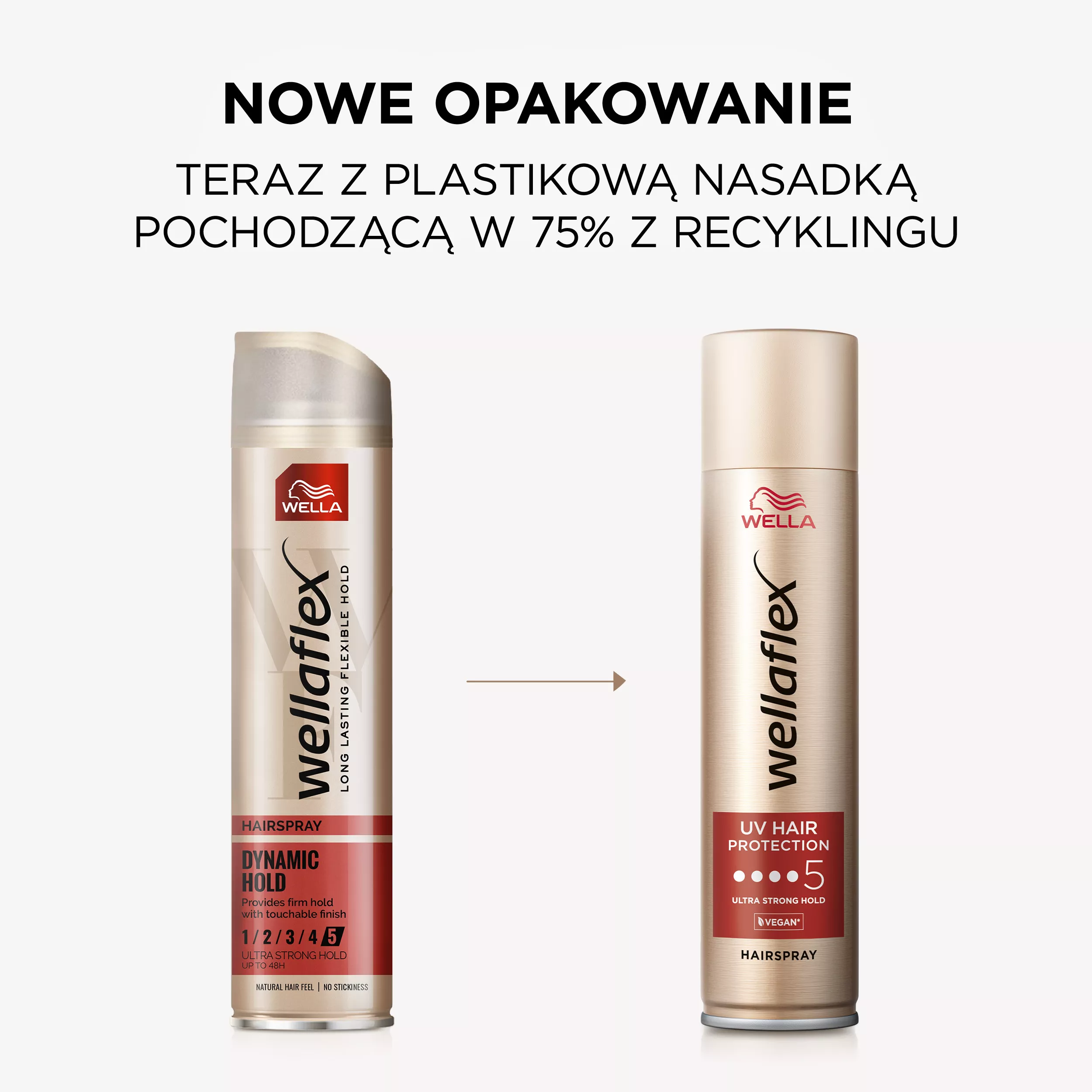 Wykorzystaj każdą chwilę, bądź pewna siebie i spraw, aby Twoja fryzura była zawsze doskonała, dzięki szerokiej gamie produktów do stylizacji Wellaflex. Wellaflex Dynamic Hold Ultra Strong to ultra mocny lakier do włosów, stworzony w technologii FlexActive, który zapewnia 3 najważniejsze efekty naturalnej, elastycznej fryzury. Zakochaj się w delikatnych w dotyku włosach bez uczucia lepkości i uzyskaj niezawodne utrwalenie, które utrzyma Twoją fryzurę w nienaruszonym stanie nawet przez 48 godzin, nie tracąc przy tym elastyczności i pozwalając włosom swobodnie się poruszać. Wygodny w aplikacji i łatwy do rozczesania, Wellaflex Dynamic Hold Ultra Strong to idealne rozwiązanie do szybkich poprawek. Dodatkowo, produkt pomaga zapewnić ochronę przed promieniowaniem UV, dzięki czemu Twoje włosy będą wyglądać pięknie, naturalnie i zdrowo każdego dnia.