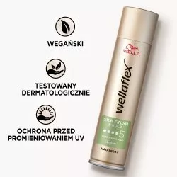 Wella Wellaflex Flexible to lakier do włosów, który pozwala Ci cieszyć się każdą chwilą i zachować pewność siebie dzięki doskonałej fryzurze. Przeznaczony do podkreślenia naturalnego piękna i indywidualnego stylu, ten ultra mocny lakier został stworzony w technologii FlexActive. Zapewnia trzy kluczowe efekty dla naturalnej i elastycznej fryzury: niezawodne utrwalenie, przyjemne w dotyku włosy bez uczucia lepkości oraz elastyczność, która pozwala włosom swobodnie się poruszać. Fryzura pozostaje nienaruszona aż do 48 godzin. Lakier jest łatwy w aplikacji i rozczesywaniu, a także chroni włosy przed promieniowaniem UV, co sprawia, że wyglądają pięknie i zdrowo każdego dnia.
