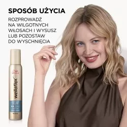 Przed użyciem dobrze wstrząśnij produkt. Dozuj piankę trzymając głowę do góry nogami. Dla włosów średniej długości zaleca się użycie ilości wielkości piłki golfowej, którą należy równomiernie rozprowadzić na wilgotnych włosach.