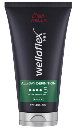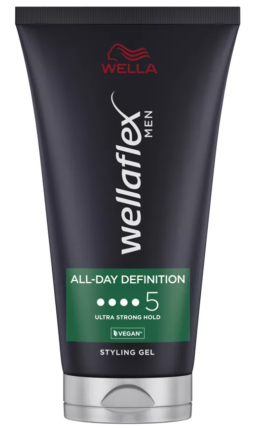 Przedstawiamy Wellaflex All-Day Definition Gel dla mężczyzn, ultratrwały żel do włosów zapewniający podkreśloną, ale naturalną stylizację. Ten żel jest delikatny dla skóry głowy i pozostawia włosy nieklejące się, z naturalnym połyskiem. Wegańska* i przetestowana dermatologicznie formuła nie zawiera silikonów i nie zostawia pozostałości na włosach, a trwałość do 48 godzin gwarantuje utrwaloną fryzurę.