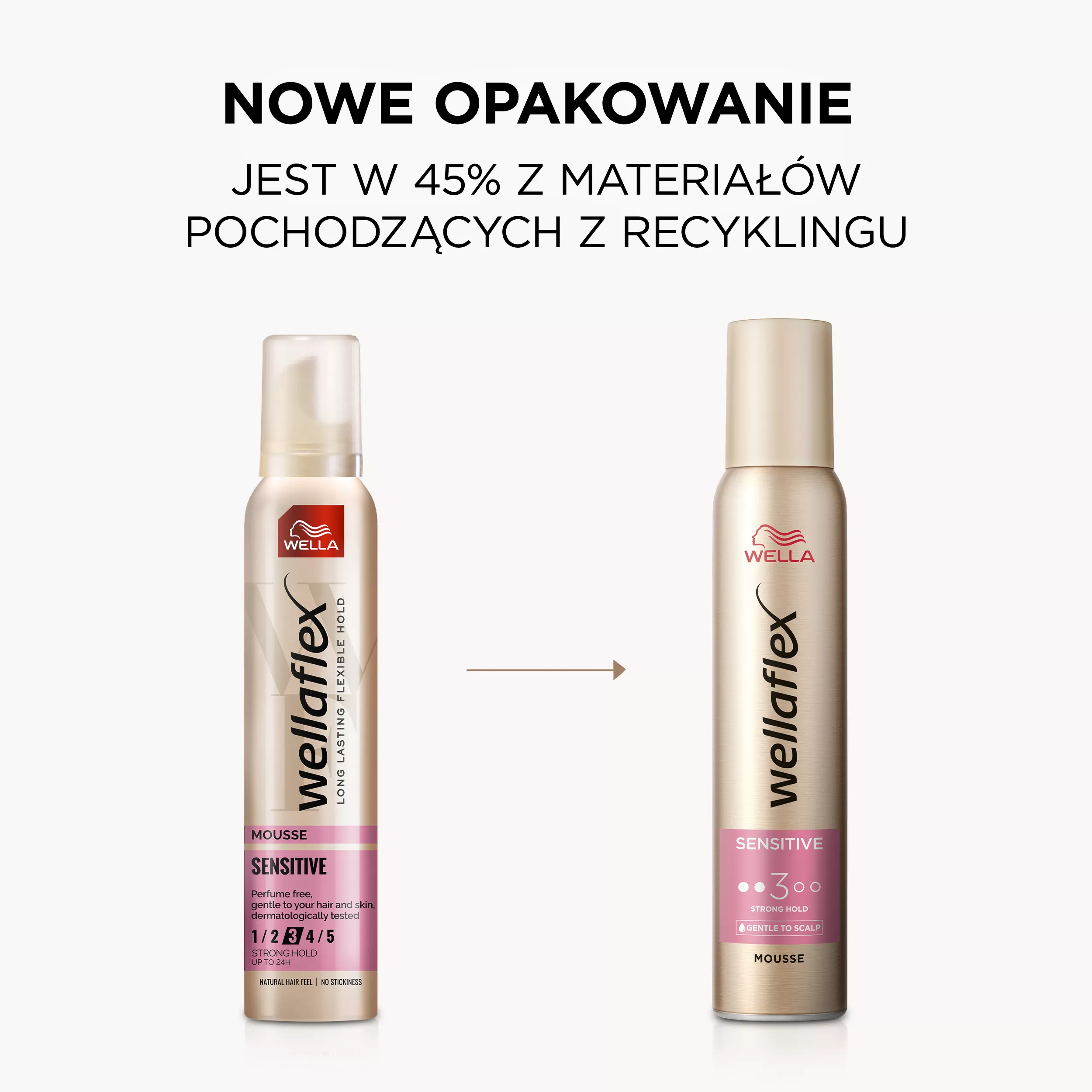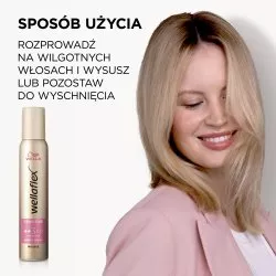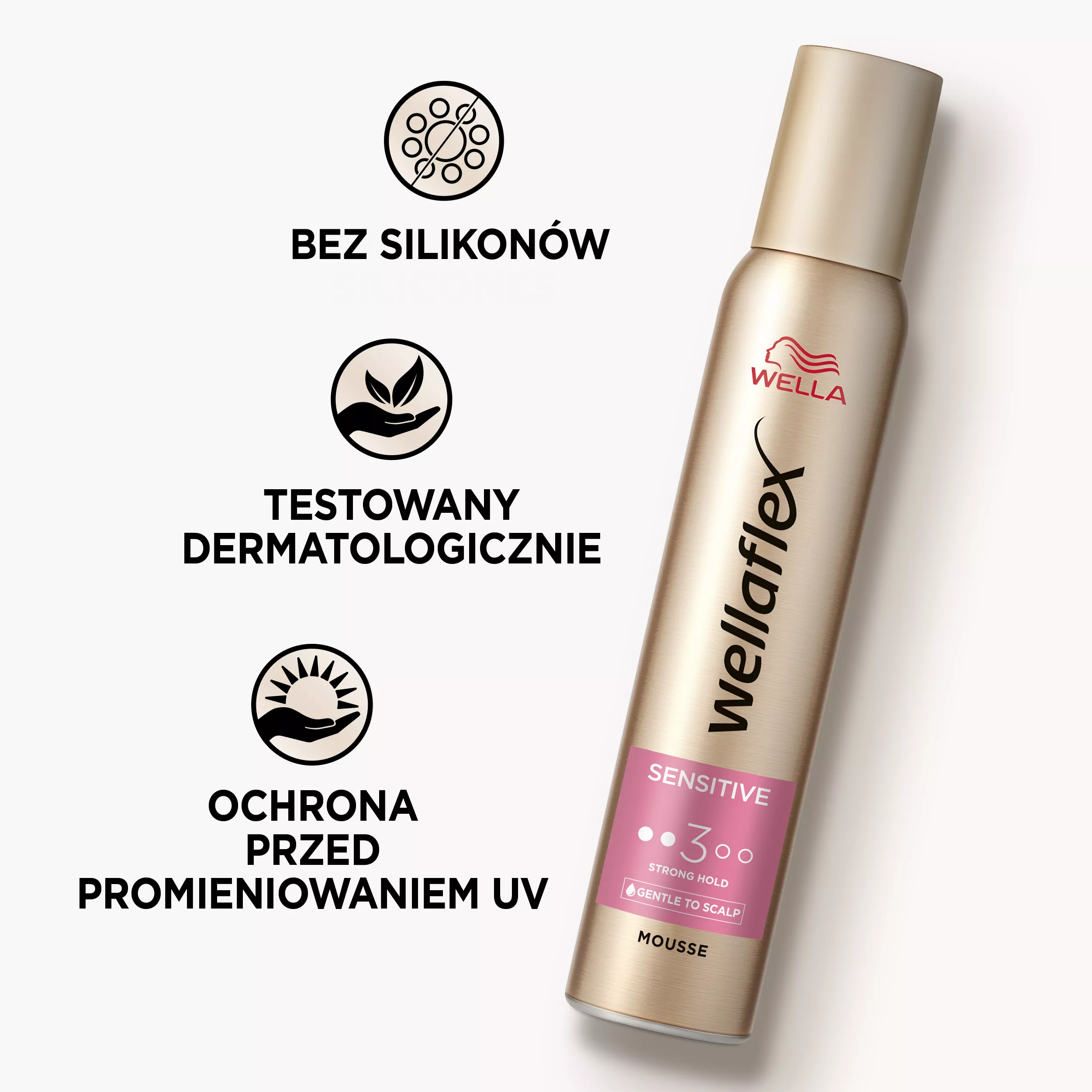 Pianka do włosów Wella Wellaflex Sensitive to idealny wybór dla tych, którzy pragną delikatnej stylizacji i łatwości rozczesywania. Dzięki zawartości Hair Taming Complex z olejkiem makadamia, włosy stają się zdyscyplinowane i łatwe w układaniu, bez efektu przesuszenia. Zapewnia mocne, elastyczne utrwalenie fryzury, które utrzymuje się nawet do 24 godzin. Produkt jest bezzapachowy, testowany dermatologicznie i wolny od silikonów, dzięki czemu jest łagodny dla włosów i skóry.