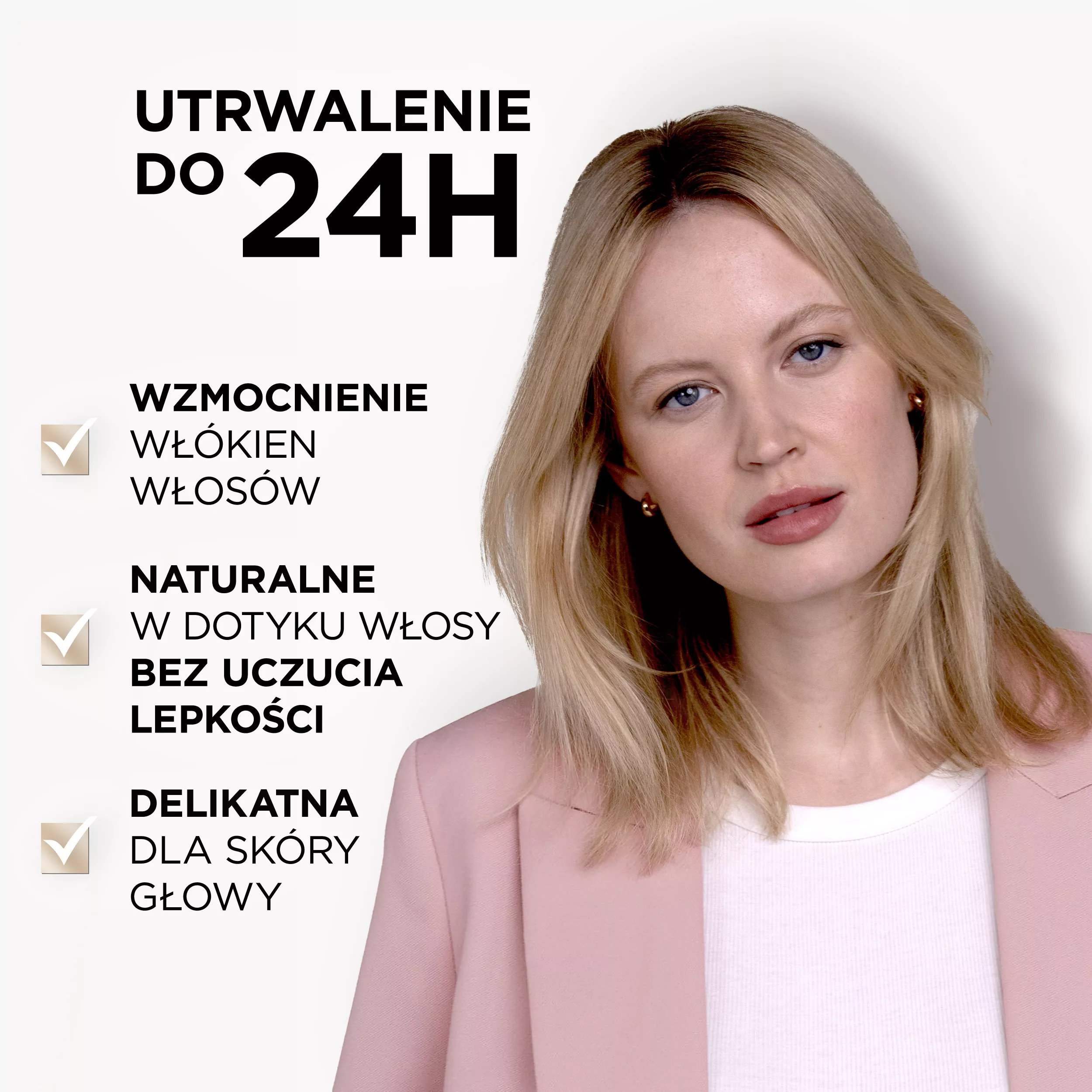 - Utrwalenie fryzury do 24 godzin bez efektu sklejenia