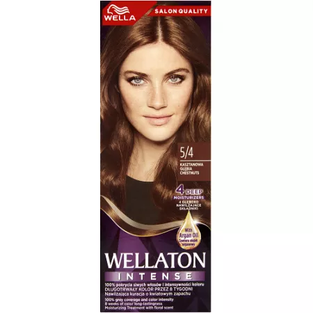 Krem intensywnie nabłyszczający Wella Wellaton 5/4 kasztanowy został stworzony, abyś mogła cieszyć się intensywnym kolorem, wyjątkowym blaskiem oraz perfekcyjnym pokryciem siwych włosów.