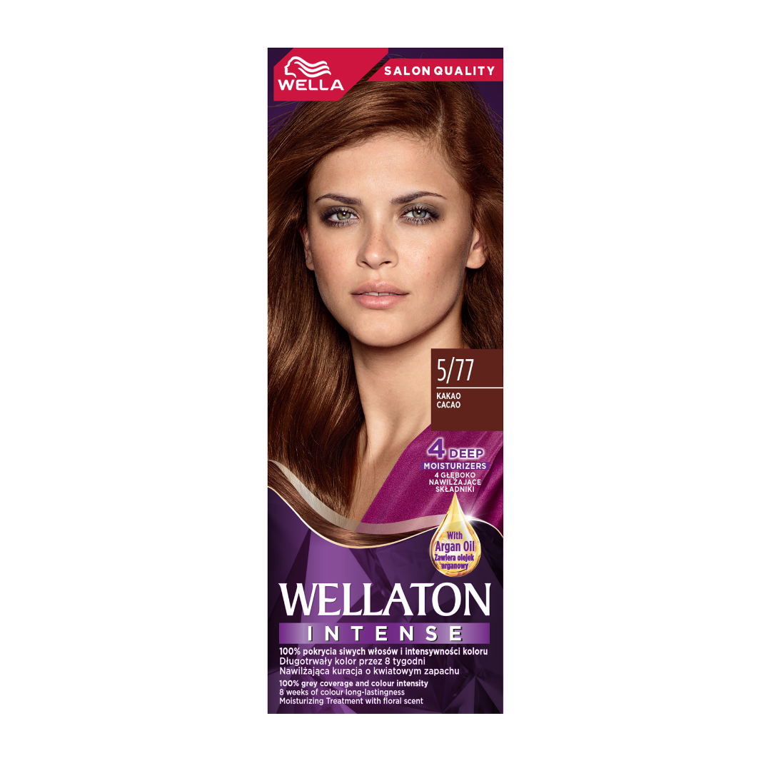 Wella Wellaton farba do włosów 5/77 kakao to krem intensywnie nabłyszczający, stworzony, aby zapewnić Ci głęboki, intensywny kolor, wyjątkowy blask oraz perfekcyjne pokrycie siwych włosów. Ciesz się efektami profesjonalnej koloryzacji w zaciszu własnego domu.
