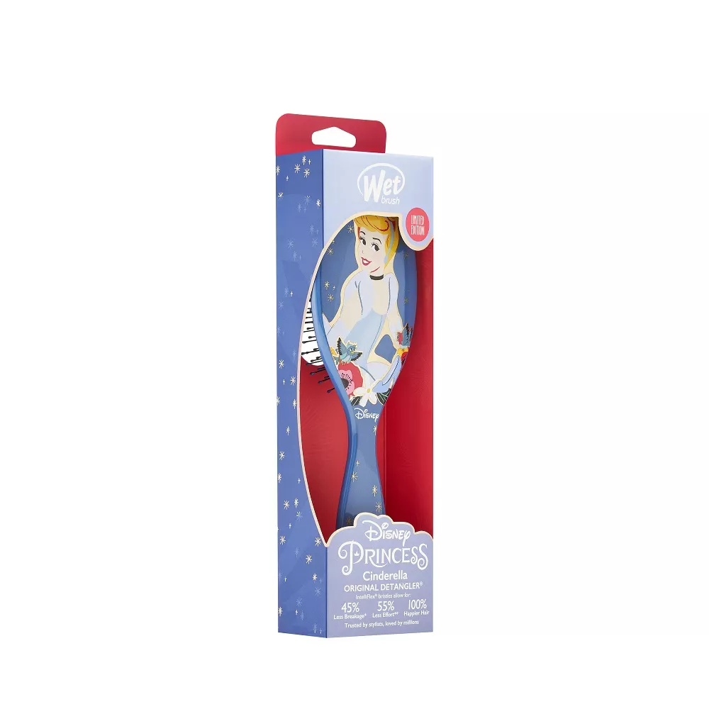 Wet Brush Original Detangler Disney Ultimate Princess, szczotka do włosów z motywem księżniczki Kopciuszka, to innowacyjne narzędzie stworzone z myślą o codziennej pielęgnacji każdego rodzaju włosów. Dzięki opatentowanej konstrukcji, szczotka delikatnie i skutecznie rozplątuje nawet najbardziej wymagające kosmyki, minimalizując jednocześnie ryzyko łamania, uszkodzeń oraz powstawania rozdwojonych końcówek. Idealna zarówno do mokrych, jak i suchych włosów, sprawia, że czesanie staje się przyjemnością, bez bólu i szarpania. Unikalny design z wizerunkiem Kopciuszka na tyle szczotki sprawia, że produkt zachwyci zarówno dzieci, jak i dorosłych miłośników Disney'a.