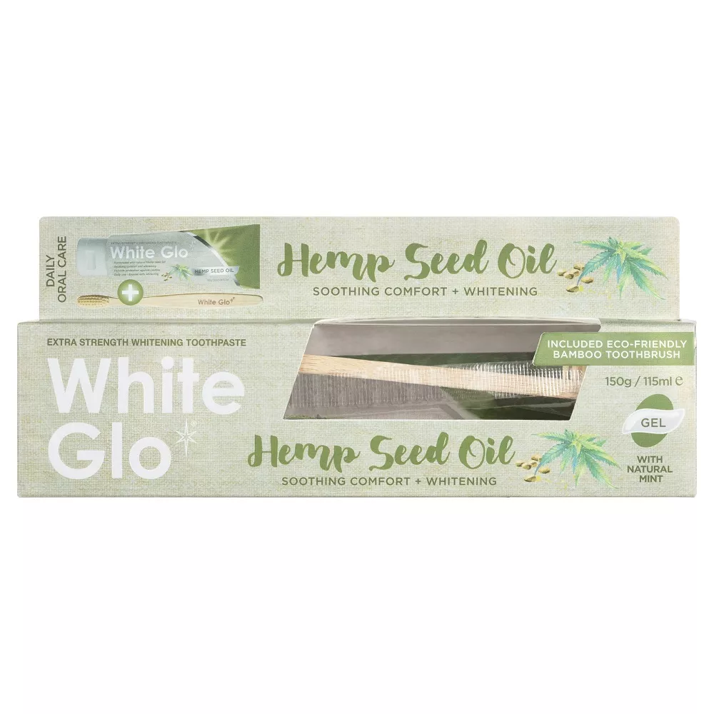 White Glo Hemp Seed Oil Toothpaste – wybielająca pasta do zębów z olejem konopnym 150g/115ml + bambusowa szczoteczka