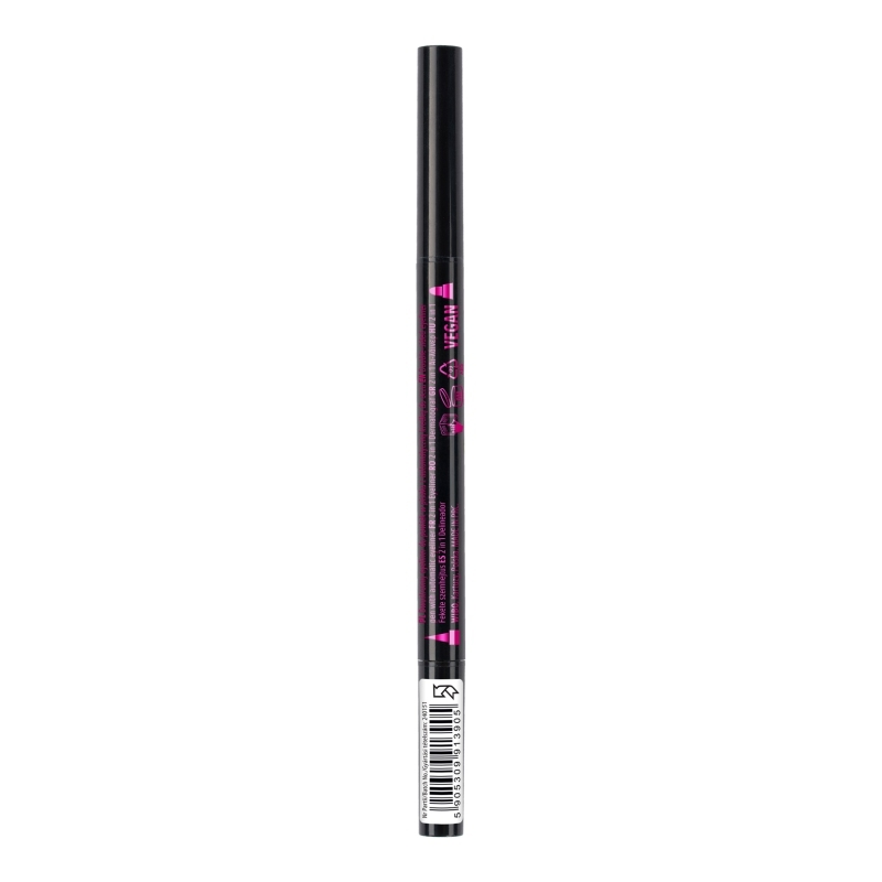 - Dwustronna konstrukcja: Eyeliner w płynie i żelowa kredka w jednym produkcie.
