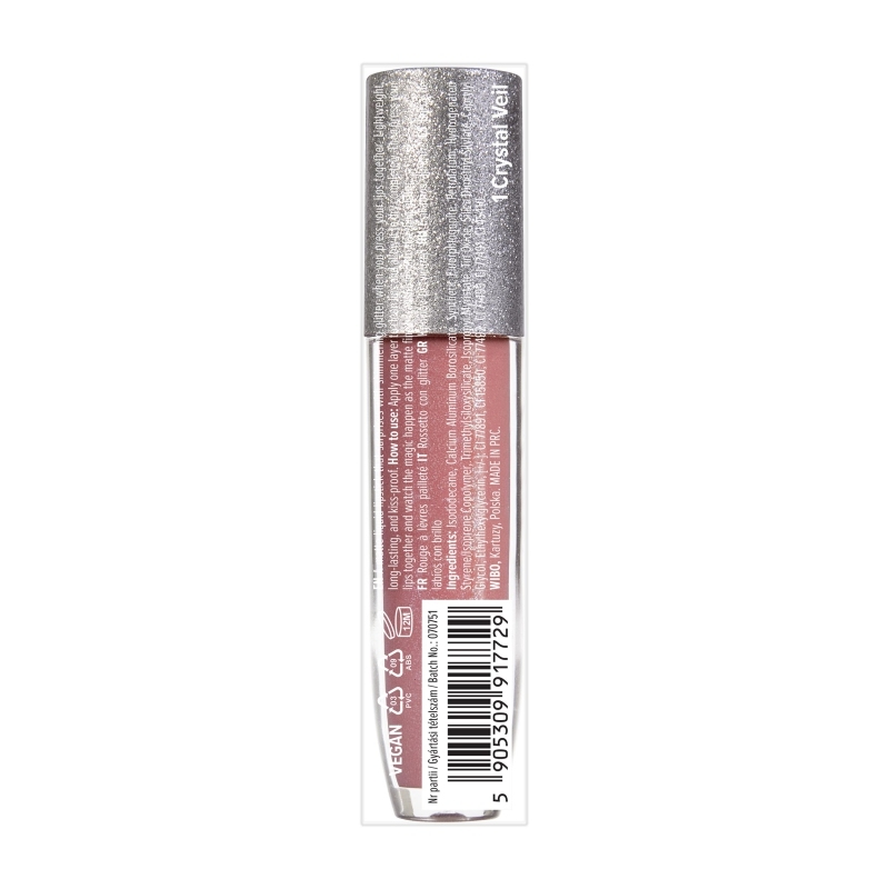 Wibo Flash Pop matowa pomadka w płynie 1 Crystal Veil 4ml to innowacyjny kosmetyk dla osób, które pragną olśniewającego efektu na ustach. Dzięki unikatowej formule pomadka zapewnia intensywnie matowe wykończenie, które po kontakcie z ustami zamienia się w spektakularny, brokatowy blask. Produkt jest ultralekki, nie klei się i gwarantuje wyjątkowy komfort noszenia przez wiele godzin. To idealny wybór dla tych, którzy lubią wyróżniać się w tłumie i kochają błyszczeć bez kompromisów.