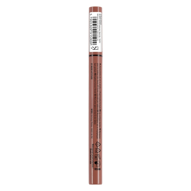 Wibo Line Lock konturówka do ust w pisaku 01 Nude Attitude to gwarancja perfekcyjnego makijażu ust, który zachwyci trwałością i precyzją. Innowacyjna formuła w wygodnej formie pisaka ułatwia aplikację, a lekka, płynna konsystencja pozwala uzyskać idealny kontur już przy pierwszym pociągnięciu. Nude Attitude to uniwersalny odcień, który doskonale podkreśla naturalny kształt ust, zapewniając matowe wykończenie lub intensyfikując kolor Twojej ulubionej pomadki.