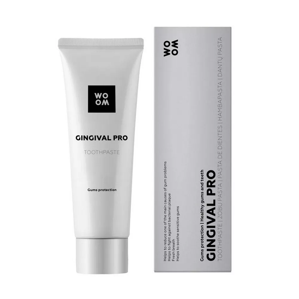 Pasta do zębów Woom Gingival Pro to zaawansowany preparat stworzony z myślą o ochronie dziąseł. Jej formuła została zaprojektowana, aby skutecznie redukować główne przyczyny problemów dziąseł, takich jak choroby i zapalenie dziąseł. Regularne stosowanie tej pasty nie tylko łagodzi objawy, ale także pomaga zapobiegać ich nawrotom, jednocześnie przeciwdziałając gromadzeniu się płytki nazębnej.