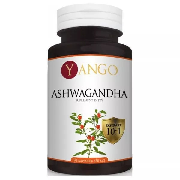 Yango Ashwagandha 430mg to suplement diety w formie 90 kapsułek, który wspiera witalność i pomaga zachować zdrowie, energię oraz młodość. Dzięki swoim wyjątkowym właściwościom, ashwagandha wspiera procesy hamowania starzenia, podnosi sprawność umysłową i fizyczną, a także pomaga radzić sobie ze zmęczeniem, gorszym nastrojem i ociężałością. Dodatkowo, suplement intensyfikuje doznania seksualne, zapewniając wszechstronne wsparcie dla ciała i umysłu.