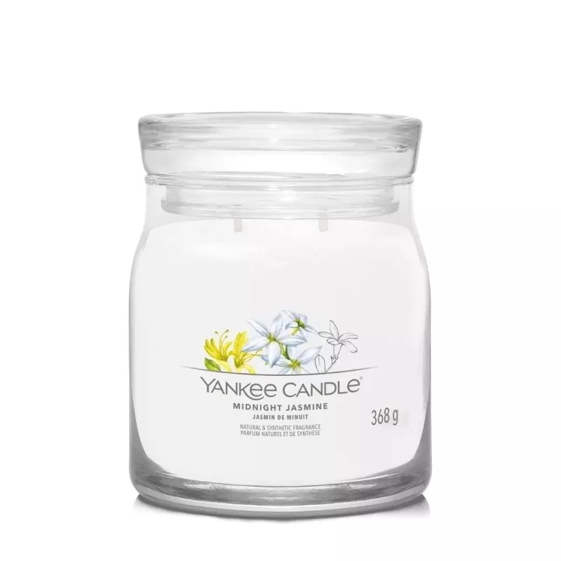 Odkryj Yankee Candle Średnia świeca zapachowa Midnight Jasmine 368g, idealne rozwiązanie, aby wypełnić Twoje wnętrze uwodzicielskim zapachem. Świece Signature od Yankee Candle® charakteryzują się odświeżonym designem słoika, dwoma bawełnianymi knotami oraz najwyższej jakości mieszanką wosku sojowego, co gwarantuje równomierne spalanie i długotrwały aromat.