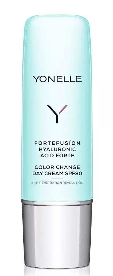 Krem koloryzujący Yonelle Fortefusion SPF30 z kwasem hialuronowym forte to innowacyjny kosmetyk do codziennej pielęgnacji każdego typu cery. Doskonale sprawdzi się szczególnie w przypadku skóry z oznakami zmęczenia, skłonnej do przebarwień, utraty jędrności i elastyczności oraz o poszarzałym kolorycie. Krem wyróżnia się unikatową formułą, która w kontakcie ze skórą zmienia kolor z białego na cielisty, natychmiast wtapiając się w cerę i nadając jej zdrowy, świeży i wypoczęty wygląd. Dzięki obecności kwasu hialuronowego forte zapewnia intensywne nawilżenie oraz wygładzenie, a wysoka ochrona SPF 30 zabezpiecza skórę przed szkodliwym promieniowaniem UV, wolnymi rodnikami oraz światłem niebieskim. Skóra po zastosowaniu kremu wygląda młodziej, jest gładka, rozświetlona i pełna blasku.