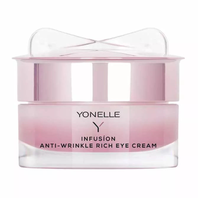 Poznaj Yonelle Infusion, bogaty przeciwzmarszczkowy krem pod oczy o pojemności 15 ml – innowacyjny kosmetyk zaprojektowany z myślą o intensywnej pielęgnacji skóry dojrzałej. Krem działa jak skuteczny zastrzyk przeciwzmarszczkowy podczas snu, aktywnie wspierając odnowę biologiczną skóry wokół oczu. Dzięki zaawansowanej formule o wysokiej zgodności biologicznej, błyskawicznie przynosi uczucie gładkości, elastyczności oraz długotrwałego komfortu. Bogactwo naturalnych składników odżywczych sprawia, że skóra staje się mniej podatna na podrażnienia, a zmarszczki – zarówno mimiczne, statyczne, jak i powstałe na skutek odwodnienia – ulegają wyraźnemu spłyceniu. Emulsja natłuszczająca zapewnia szybkie i przyjemne wchłanianie, a bezzapachowa formuła jest odpowiednia nawet dla wrażliwej skóry.