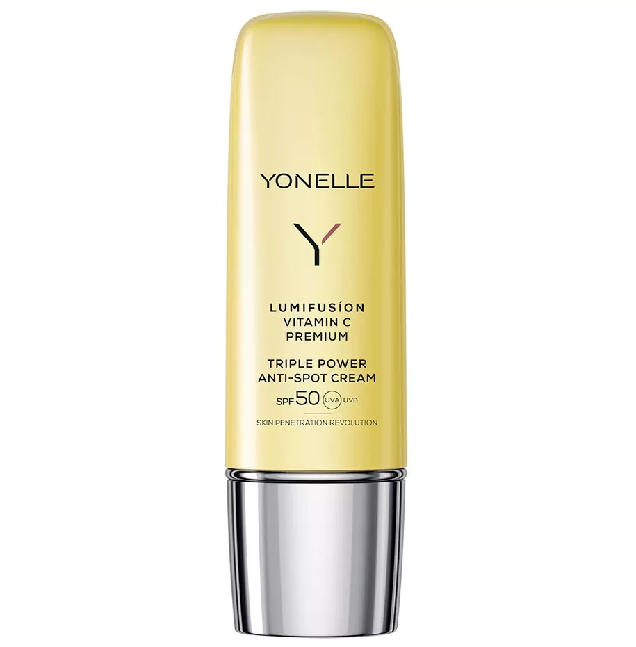 Yonelle Lumifusion to potrójnie aktywny krem z witaminą C, który skutecznie przeciwdziała przebarwieniom i zapewnia wysoką ochronę przeciwsłoneczną SPF50. Stworzony z myślą o codziennej pielęgnacji każdego typu skóry, krem został wzbogacony o witaminę C premium oraz innowacyjny kompleks LACTIFERUL™, co czyni go niezastąpionym kosmetykiem dla osób pragnących uzyskać jednolity, rozjaśniony koloryt cery. Produkt nie tylko chroni skórę przed szkodliwym działaniem promieniowania UV, ale również skutecznie redukuje przebarwienia, intensywnie nawilża oraz wygładza skórę, nadając jej promienny i zdrowy wygląd.