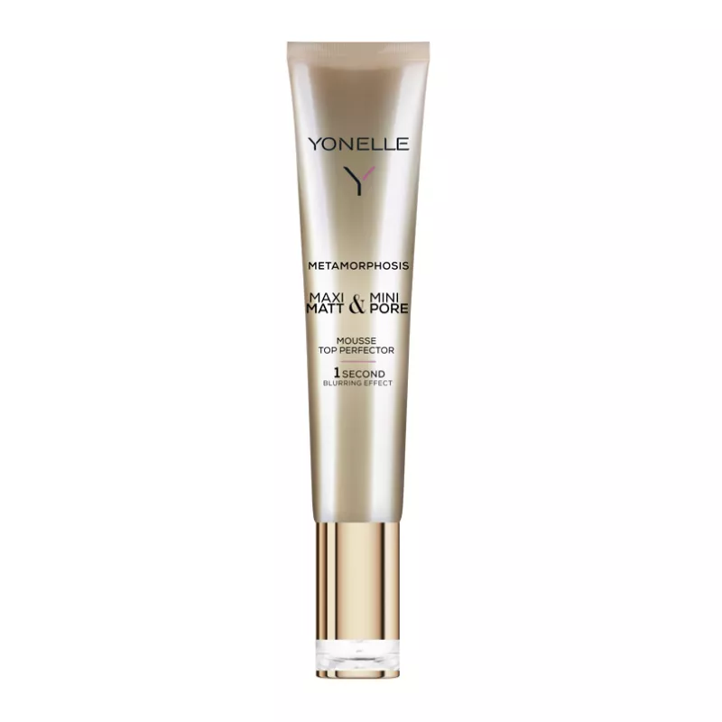 Marzysz o perfekcyjnie gładkiej, matowej cerze bez widocznych porów i niedoskonałości? Yonelle Metamorphosis, mus-perfektor matujący skórę i maskujący pory to innowacyjne rozwiązanie, które pozwala osiągnąć efekt idealnej skóry w zaledwie kilka sekund. Dzięki ultra lekkiej formule mus natychmiast wygładza, matuje i nadaje cerze efekt rozmycia (blur), typowy dla profesjonalnych filtrów fotograficznych. Produkt doskonale sprawdzi się zarówno dla młodej, jak i dojrzałej cery – szczególnie dla skóry zmęczonej, błyszczącej się oraz z rozszerzonymi porami. Może być stosowany jako krem pielęgnacyjny lub baza pod makijaż, bez obaw o efekt maski. Formuła wzbogacona o polisiloksany, lipidowy ekstrakt z Crithmum maritimum, witaminę E oraz nieinwazyjne wypełniacze zmarszczek zapewnia pielęgnację i natychmiastowy efekt perfekcyjnej skóry.