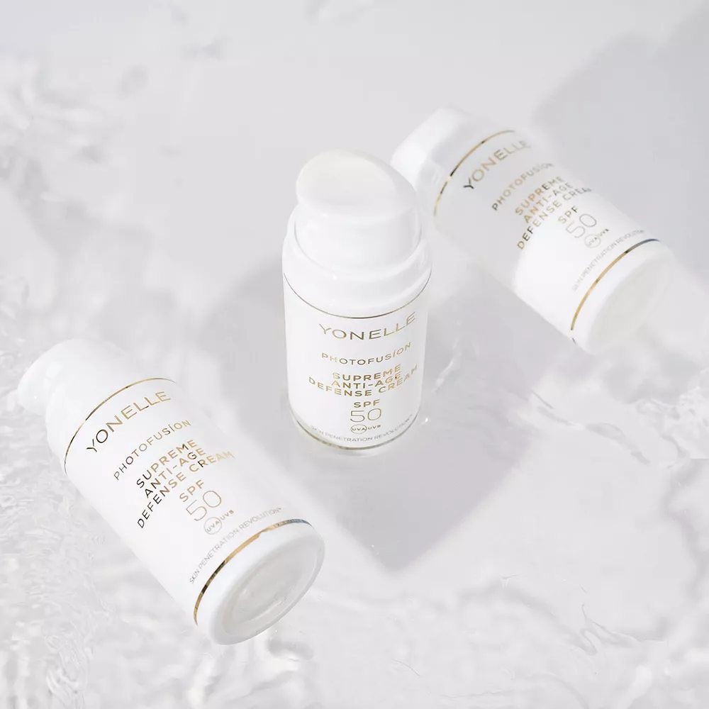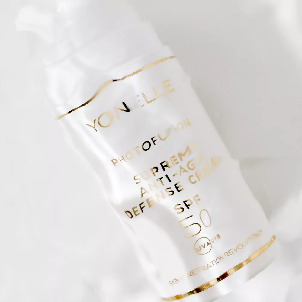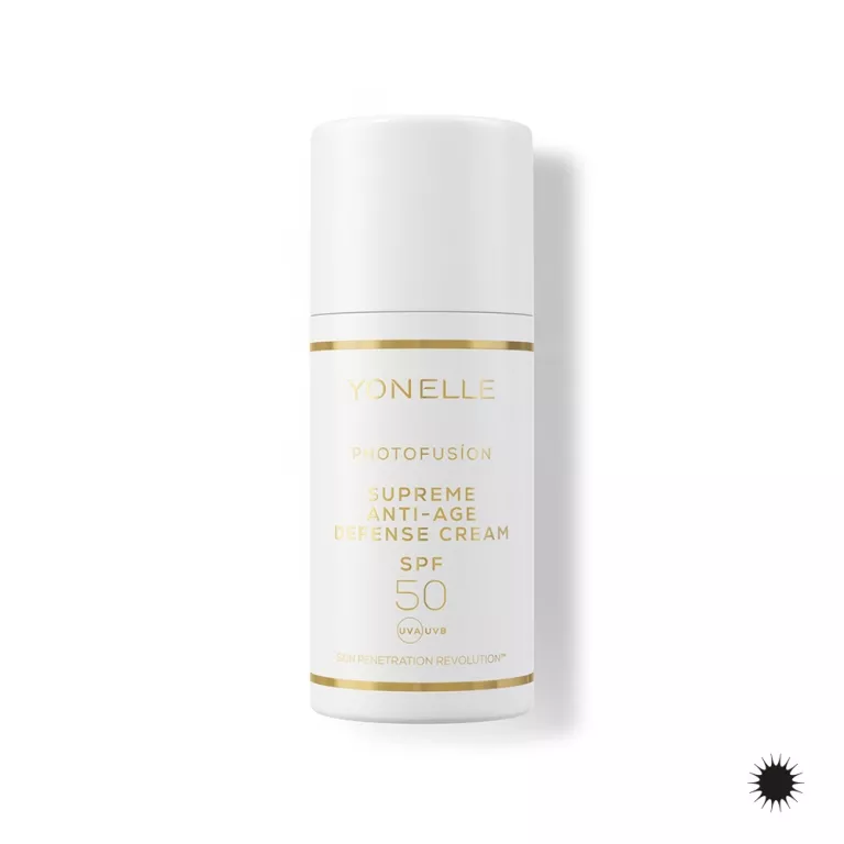 Yonelle Photofusion Supreme, krem SPF50 z przeciwzmarszczkową tarczą ochronną, to zaawansowany kosmetyk do codziennej pielęgnacji twarzy, który zapewnia bardzo wysoką ochronę przeciwsłoneczną i skuteczne działanie przeciwstarzeniowe. Stworzony z myślą o cerze dojrzałej, skłonnej do przebarwień, suchej, tracącej jędrność oraz wrażliwej na promieniowanie słoneczne, krem ten doskonale zapobiega fotostarzeniu, wygładza skórę i poprawia jej jędrność. Dzięki lekkiej, komfortowej konsystencji idealnie sprawdza się również jako baza pod makijaż, nie bieli skóry i nie pozostawia uczucia ciężkości.