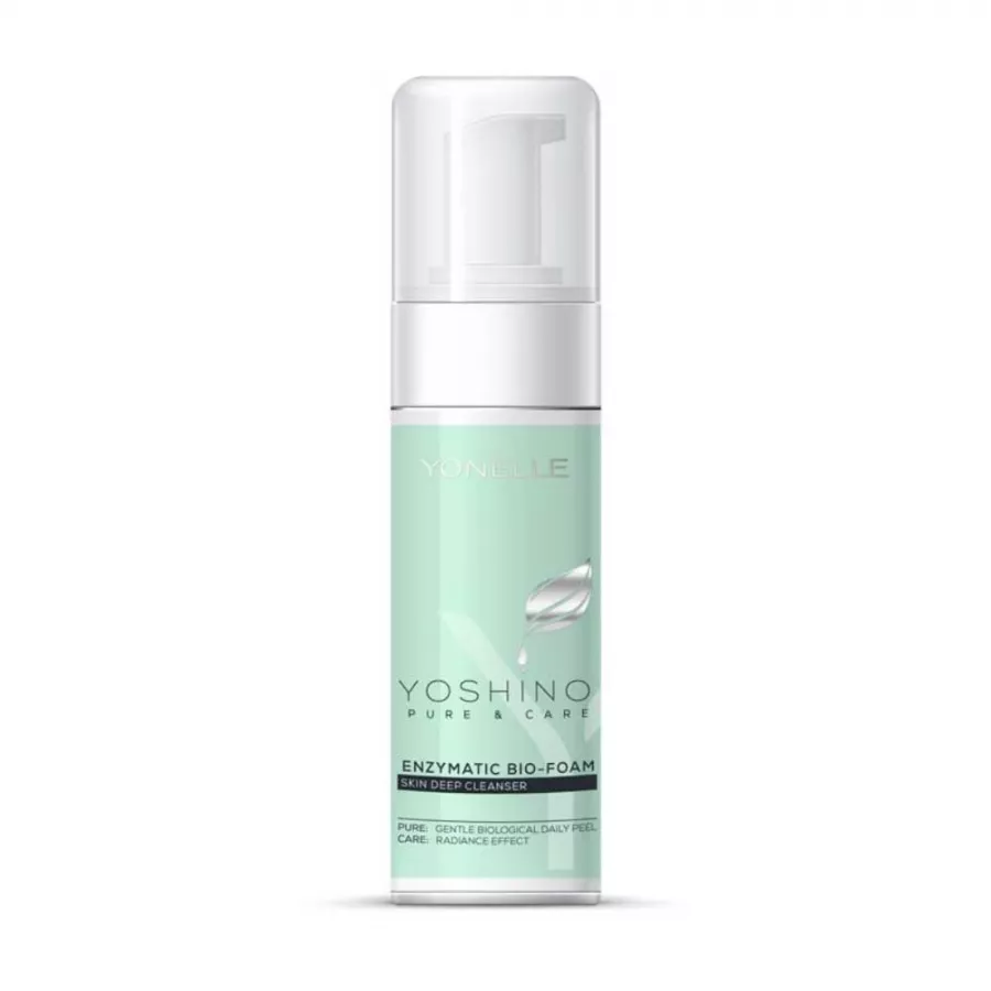 Yonelle Yoshino Pure & Care Enzymatic Bio-Foam to innowacyjna, enzymatyczna bio-pianka do codziennego oczyszczania skóry. Produkt doskonale sprawdza się przy każdym rodzaju cery, również wrażliwej. Skutecznie usuwa zanieczyszczenia i pozostałości makijażu, delikatnie złuszcza oraz pielęgnuje, nie naruszając przy tym naturalnej bariery hydrolipidowej skóry. Już po pierwszym użyciu skóra staje się wyraźnie rozświetlona, odświeżona i nawilżona. Formuła oparta na biologicznym kompleksie aktywnych enzymów, mocznika, trehalozy i ultra łagodnych, naturalnych substancji myjących gwarantuje skuteczność oraz bezpieczeństwo pielęgnacji.