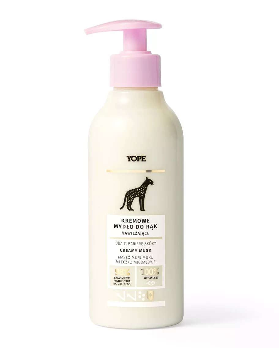 Yope Creamy Musk to intensywnie nawilżające mydło w płynie o kremowej konsystencji, które zapewnia nie tylko doskonałą pielęgnację, ale także wyjątkowy zapach luksusowego piżma. Dzięki innowacyjnej lipobiotycznej formule, po każdym myciu dłonie będą gładkie, chronione przed szkodliwymi czynnikami zewnętrznymi i pięknie pachnące.