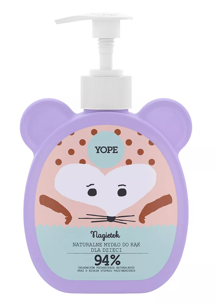 Yope tym razem zachwyca mydłem stworzonym specjalnie z myślą o dzieciach! Mydło do rąk dla dzieci Yope Nagietek zawiera aż 94% składników pochodzenia naturalnego. Mydło może być używane dla dzieci powyżej 3. roku życia. Produkt ten doskonale oczyszcza skórę, a także zabezpiecza ją przed podrażnieniami oraz wysuszaniem. Ponadto mydło charakteryzuje się lekką konsystencją, która bardzo łatwo się spłukuje. W składzie znajduje się ekstrakt z kwiatów nagietka, który doskonale pobudza regenerację naskórka, przyspiesza gojenie się ranek i podrażnień. Co ważne, mydło ma neutralne dla skóry pH, co sprawia, że jest bezpieczne dla jej naturalnej bariery ochronnej. Skład wolny jest od SLES, SLS, PED, EDTA, DEA, sztucznych barwników oraz składników pochodzenia zwierzęcego. Piękne opakowanie z pewnością zachęci Twoje dziecko do pamiętania o umyciu rąk!
