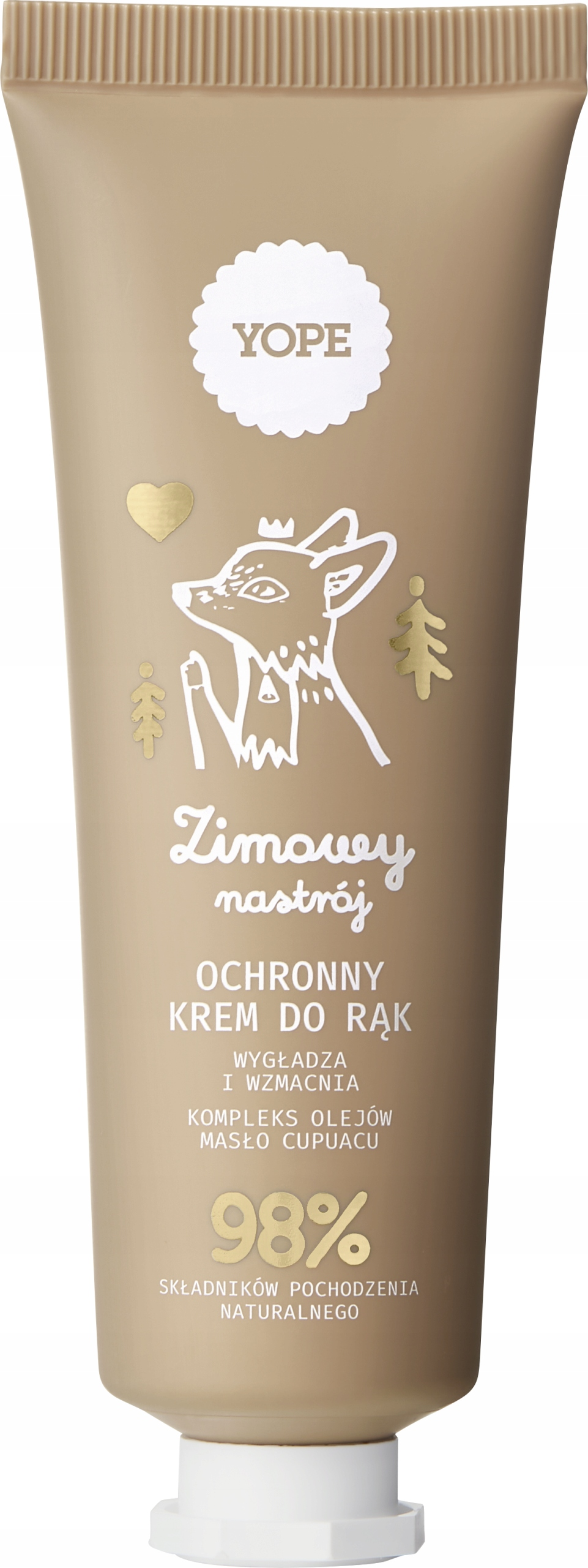 Odkryj ochronny krem do rąk Yope Zimowy Nastrój w limitowanej edycji – idealny wybór na chłodne, zimowe dni. Aksamitna formuła z 98% składników pochodzenia naturalnego otula dłonie niczym ciepła rękawiczka, zapewniając natychmiastową ulgę, intensywną regenerację oraz długotrwałą ochronę przed mrozem i wiatrem. Wyjątkowy, otulający zapach ambry, cedru i pieprzu sprawia, że codzienna pielęgnacja staje się prawdziwą przyjemnością.