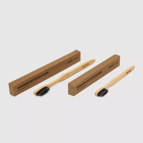 Bambusowa szczoteczka do zębów przeznaczona jest do codziennej higieny jamy ustnej. Nylonowe, miękkie włosie nasycone zostało aktywnym węglem. Dzięki temu posiada ona właściwości wybielające oraz antybakteryjne, zapewniając przy tym dokładne czyszczenie zębów. Rączka szczoteczki wykonana została w 100% z biodegradowalnego drewna bambusowego, zaś delikatne włosie główki powstało z nylonu. Używana systematycznie wraz z pastą do zębów z węglem drzewnym ZEW for men przyczyni się do zmniejszenia nadwrażliwości zębów oraz poprawy ich kolorytu.
