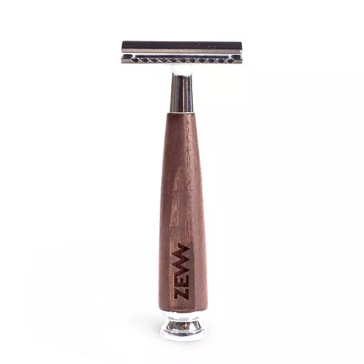 Koniec z kompromisami! Teraz dla każdego golibrody mają niezwykle solidną maszynkę do golenia ZEW for Men z jesionowym trzonkiem. Ta maszynka jest bardzo wytrzymała. Grzebień głowicy jest zamknięty. Głowica nie rusza się. Maszynka jest łatwa w czyszczeniu. Jej wyważenie sprawia, że idealnie leży w dłoni. Trzonek wykonano z impregnowanego termicznie drewna jesionu, co z pewnością wyróżnia to akcesorium na tle byle jakich maszynek dostępnych nawet w kioskach. Do maszynki pasują żyletki innych producentów.