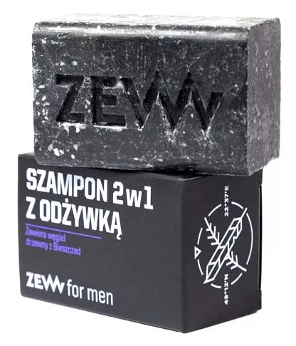 Szampon 2w1 dla mężczyzn w kostce pozwoli Ci zadbać kompleksowo o włosy i skórę głowy. W składzie znajduje się węgiel drzewny, który działa detoksykująco, oczyszczająco i odżywczo. A ponadto rozwiązuje problem przetłuszczania się skóry głowy. Szampon ZEW for MEN łączy w sobie zalety myjadła i odżywki do włosów. Kosmetyk odświeża włosy, oczyszcza, wygładza i poprawia ich elastyczność. Pomaga też w walce z łupieżem, przeciwdziała wysuszeniu i niweluje rozdwojone końcówki. Formuła została opracowana z myślą o każdym rodzaju włosów, również o włosach cienkich.