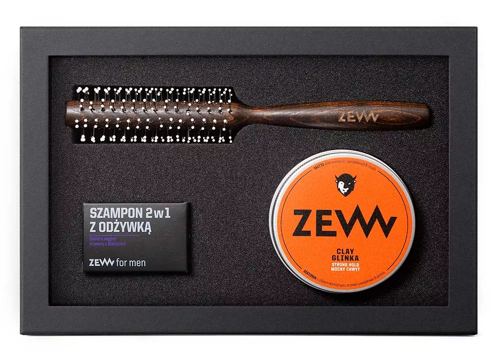 Szukasz pomysłu na prezent? A może chcesz kompleksowo zadbać o swoją grzywę? Niezależnie od tego, jaka jest odpowiedź, z pewnością warto zapoznać się z zestawem dla niego ZEW for MEN Miejski Gentleman. W skład zestawu wchodzi uniwersalny szampon w kostce z węglem z bieszczadzkich lasów, które z powodzeniem zastąpi tradycyjny szampon oczyszczający. Szampon 2w1 dla mężczyzn w kostce pozwoli Ci zadbać kompleksowo o włosy i skórę głowy. W składzie znajduje się węgiel drzewny, który działa detoksykująco, oczyszczająco i odżywczo. A ponadto rozwiązuje problem przetłuszczania się skóry głowy. A do tego glinka do włosów z olejem konopnym, Zestaw uzupełnia roller. Okrągła szczotka do brody typu roller od ZEW for Men pozwoli na szybką i łatwą stylizację brody, jak również włosów. Szczotka nie szarpie i nie wyrywa włosów, więc może być stosowana codziennie.