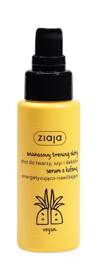 Ziaja Ananasowa to energetyzująco-nawilżające serum do twarzy, które działa jak błyskawiczny shot odświeżenia i nawilżenia skóry. Dzięki ultralekkiej konsystencji kremo-żelu jest idealne do codziennego stosowania. Serum zawiera wysoką dawkę składników aktywnych, takich jak ekstrakt z ananasa i kofeina, które stanowią prawdziwy kosmetyczny doping dla skóry, oraz nawadniający kwas hialuronowy. Soczysty zapach egzotycznych ananasów oraz fascynująca formuła produktu gwarantują intensywną i odświeżającą pielęgnację.