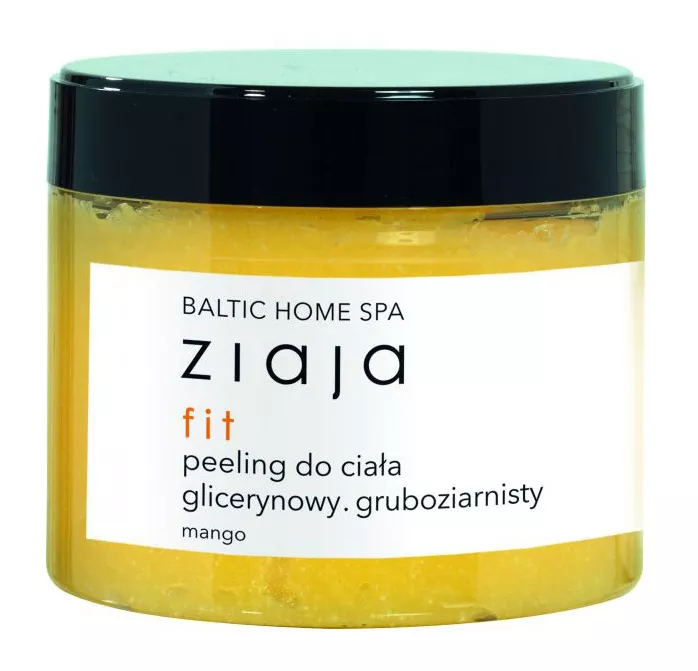 Gruboziarnisty peeling do ciała Ziaja Baltic Home SPA Fit to idealny sposób, aby we własnej łazience stworzyć atmosferę prawdziwego salonu SPA. Produkt zawiera delikatne drobinki, które skutecznie złuszczają martwe komórki naskórka, pozostawiając skórę wygładzoną i elastyczną. Peeling doskonale ujędrnia skórę i wspomaga redukcję cellulitu, dzięki czemu staje się ona miękka i przyjemna w dotyku. Skład peelingu wzbogacony jest o kofeinę, krzem, kwas alginowy, figę, masło illipe oraz glikozaminoglikany. Co więcej, peeling zachwyca zapachem mango i zawiera aż 90% składników naturalnych.