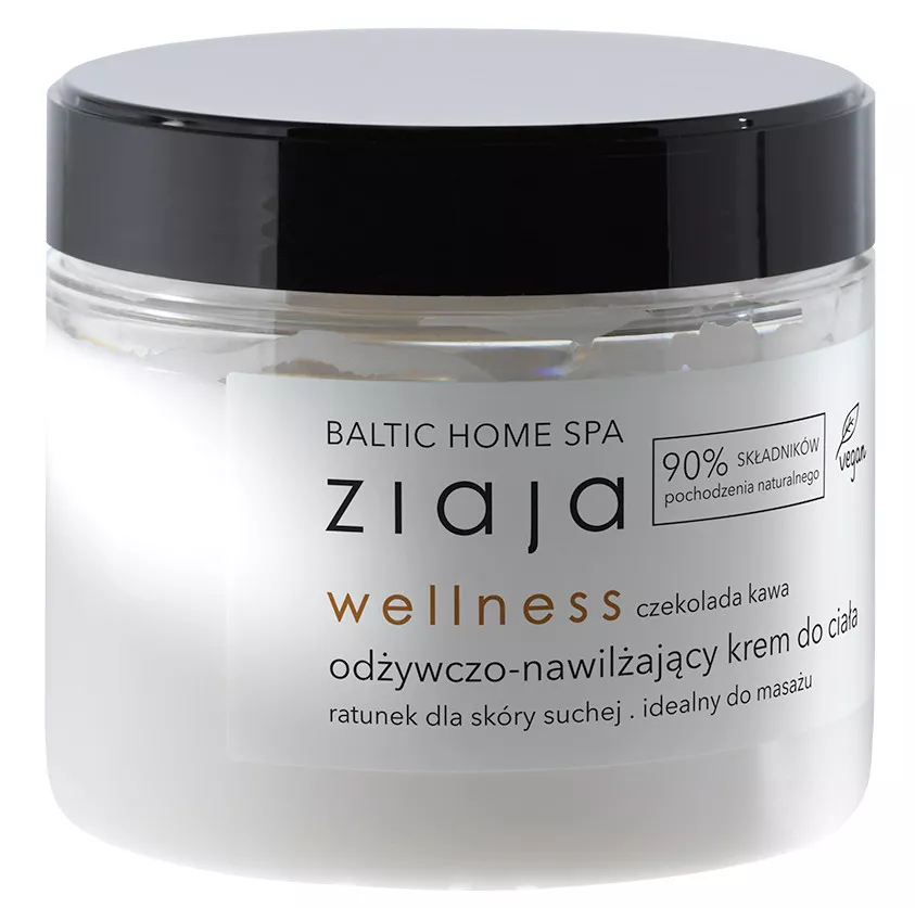 Krem do ciała Ziaja Baltic Home Spa to doskonałe rozwiązanie dla suchej skóry, oferujące głębokie nawilżenie i poprawę jędrności. Jego unikalna formuła sprawia, że skóra staje się miękka, aksamitna i jedwabiście gładka. Relaksujący zapach gorzkiej czekolady i kawy dodaje wyjątkowego charakteru temu wegańskiemu kosmetykowi, który zawiera aż 90% naturalnych składników.