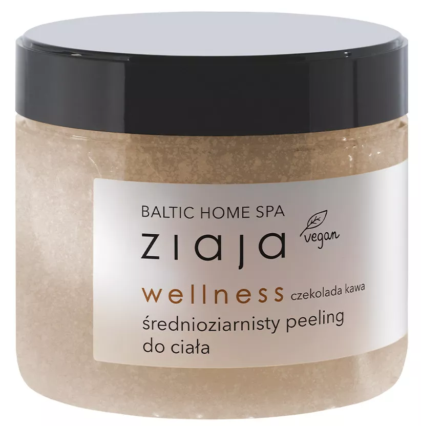 Ziaja Baltic Home Spa Wellness to średnioziarnisty peeling do ciała, który skutecznie złuszcza zrogowaciały i szorstki naskórek, jednocześnie zmiękczając i wygładzając skórę. Ten pielęgnacyjny produkt pozostawia skórę przyjemnie pachnącą aromatami kawy i gorzkiej czekolady, co wywołuje pozytywne emocje.
