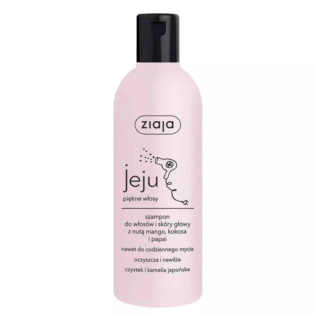Marzysz o pięknych włosach? Zacznij od oczyszczania. Szampon do włosów i skóry głowy Ziaja Jeju idealnie nadaje się do codziennego stosowania. Produkt nie tylko skutecznie myje włosy i skórę głowy, ale także nawilża i sprawia, że włosy są gładkie, lekkie i odświeżone. Zawarty w nim olej z kamelii doskonale regeneruje włosy i naskórek, zapewniając im odpowiednie nawilżenie. Dzięki czystkowi, szampon pomaga kontrolować nadmierne przetłuszczanie się włosów, a aktywne salicylany z topoli osikowej dokładnie je oczyszczają. Całość urzeka zapachem mango, kokosa i papai.